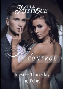 SHE´S IN CONTROL theme night @mystique, enjoy a different & hot night out. Loose your shyness and become completely uninhibited. TRY IT !!